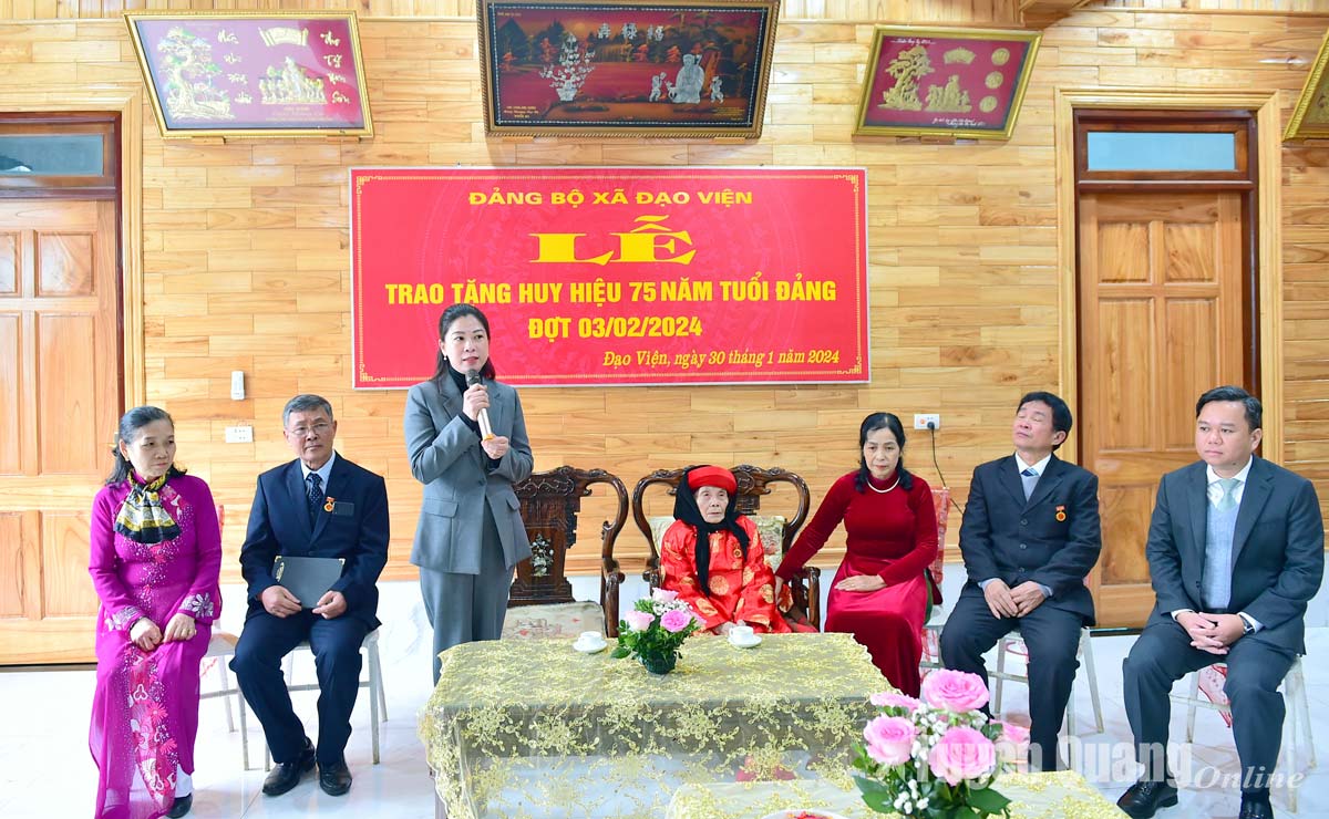 Sáng nay 30-1, đồng chí Lê Thị Kim Dung, Phó Bí thư Thường trực Tỉnh ủy, Chủ tịch HĐND tỉnh đã trao Huy hiệu Đảng đợt 3/2/2024 cho đảng viên cao tuổi tại xã Đạo Viện, huyện Yên Sơn.