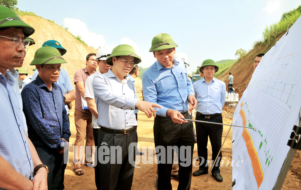 Sáng 6-10, đồng chí Nguyễn Văn Sơn, Phó Bí thư Tỉnh uỷ, Chủ tịch UBND tỉnh đã đi kiểm tra tiến độ thi công toàn tuyến Dự án Đầu tư xây dựng đường cao tốc Tuyên Quang – Phú Thọ kết nối với cao tốc Nội Bài – Lào Cai. Cùng đi có lãnh đạo các sở, ban, ngành; huyện Yên Sơn, thành phố Tuyên Quang; đại diện các nhà thầu thi công.