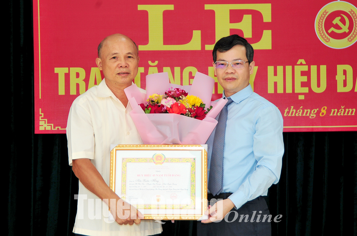 Chủ tịch UBND tỉnh Nguyễn Văn Sơn trao Huy hiệu Đảng tại phường Tân Quang