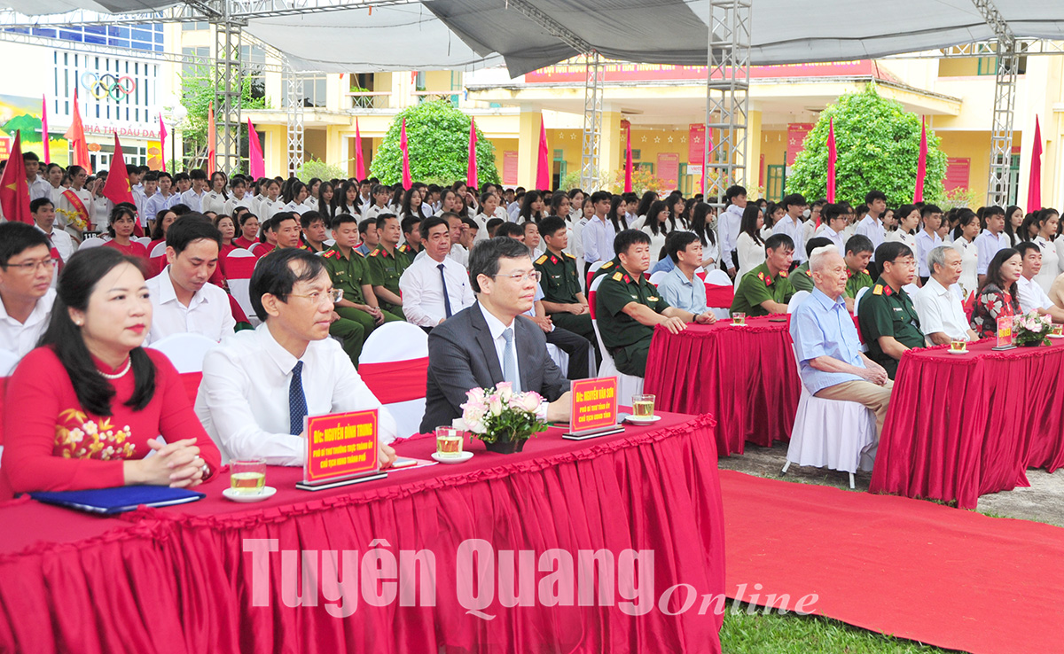 Sáng 5-9, đồng chí Nguyễn Văn Sơn, Phó Bí thư Tỉnh ủy, Chủ tịch UBND tỉnh dự Lễ khai giảng năm học mới tại Trường THPT Nguyễn Văn Huyên (TP Tuyên Quang). Dự khai giảng có lãnh đạo Sở Giáo dục và Đào tạo, Thành ủy Tuyên Quang; một số cơ quan, đơn vị trên địa bàn thành phố; Hiệu trưởng Trường THPT Nguyễn Văn Huyên các thời kỳ.