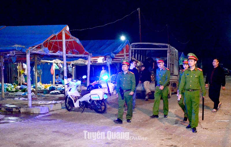 Công an xã Lưỡng Vượng (TP Tuyên Quang) thường xuyên duy trì tuần tra ban đêm trấn áp tội phạm.