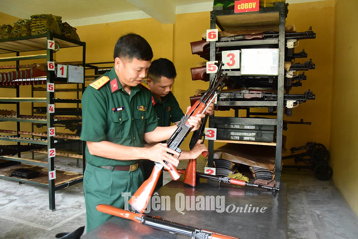 Cán bộ Ban CHQS huyện Lâm Bình phát huy trách nhiệm nêu gương trong bảo đảm kho vũ khí đạn an toàn tuyệt đối.