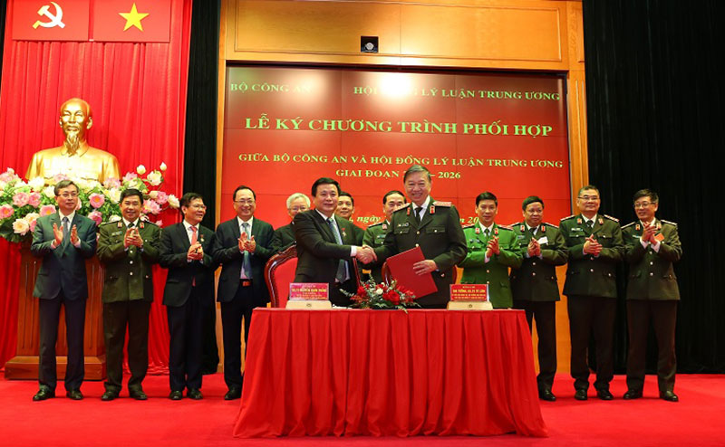 Lễ ký chương trình phối hợp giữa Bộ Công an và Hội đồng Lý luận Trung ương _Ảnh: cand.com.vn