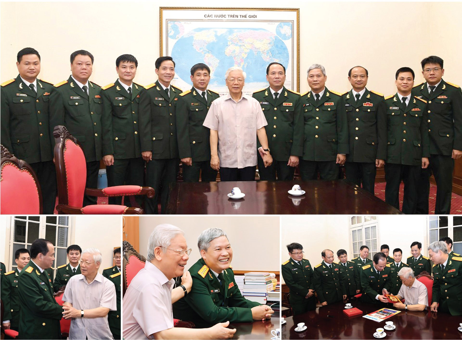 Tổng bí thư Nguyễn Phú Trọng thăm hỏi cán bộ, chiến sĩ và lực lượng chức năng làm nhiệm vụ tại cửa khẩu Quốc tế Hữu Nghị (Lạng Sơn) trong chuyến công tác của Tổng Bí thư tại tỉnh Lạng Sơn vào tháng 8-2023: Ảnh: Báo Biên Phòng