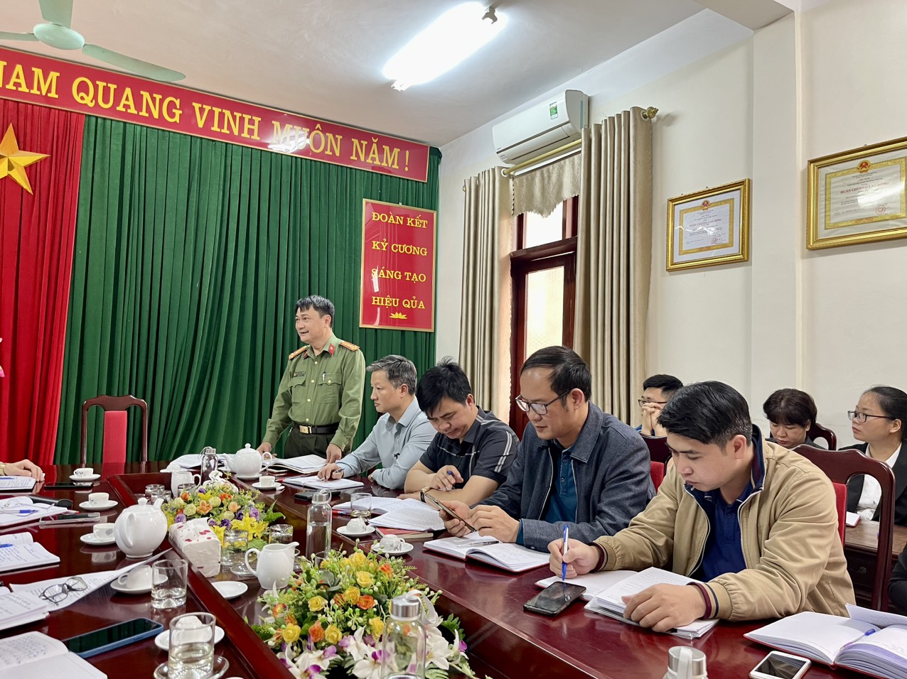 Đồng chí Thượng tá Nguyễn Xuân Thưởng, Phó Trưởng phòng An ninh chính trị nội bộ, Công an Tỉnh Tuyên Quang quán triệt, triển khai chuyên đề tại Hội nghị tập huấn