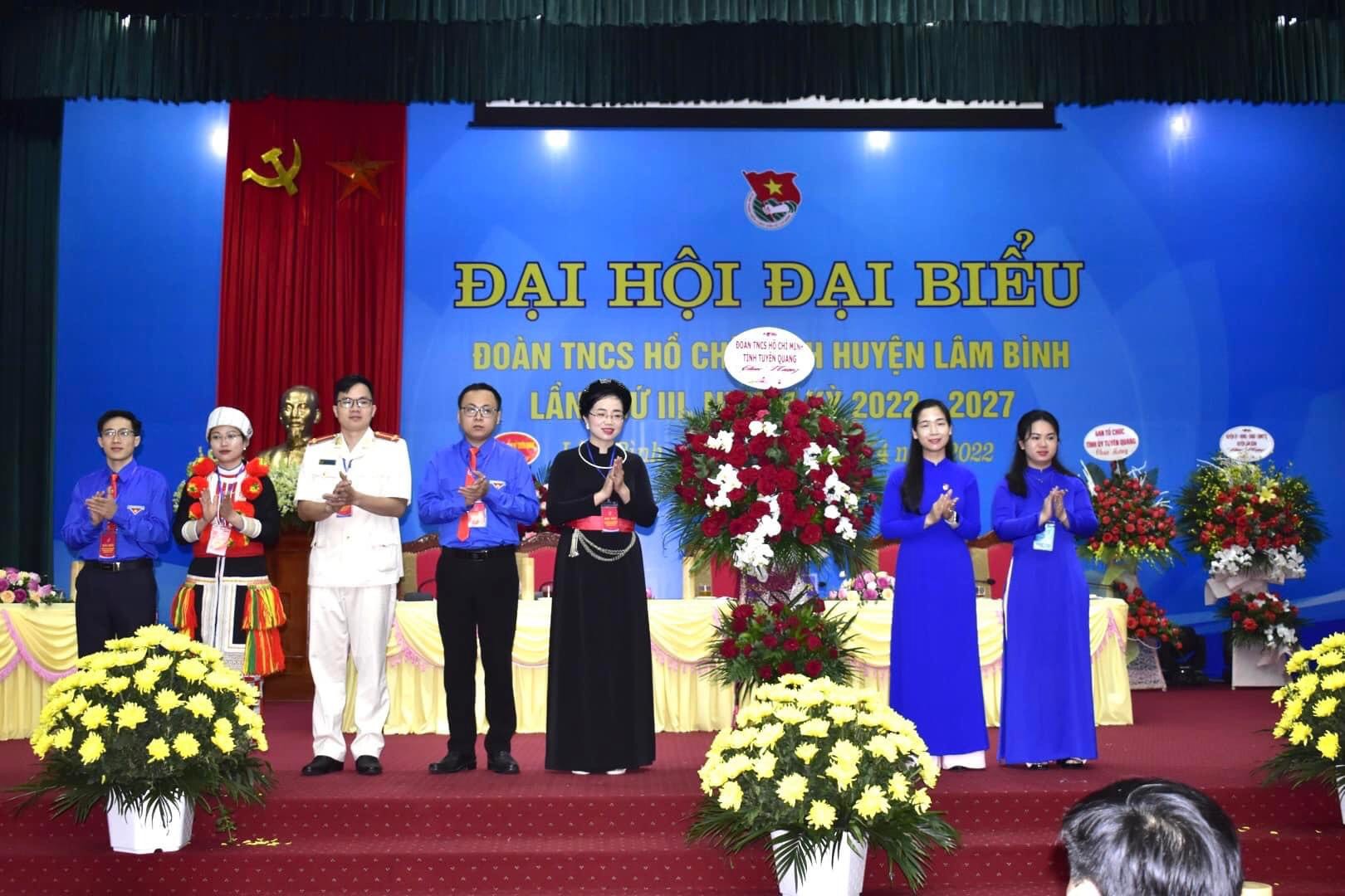 Thường trực Tỉnh đoàn tặng hoa chúc mừng Đại hội đại biểu Đoàn TNCS Hồ Chí Minh huyện Lâm Bình