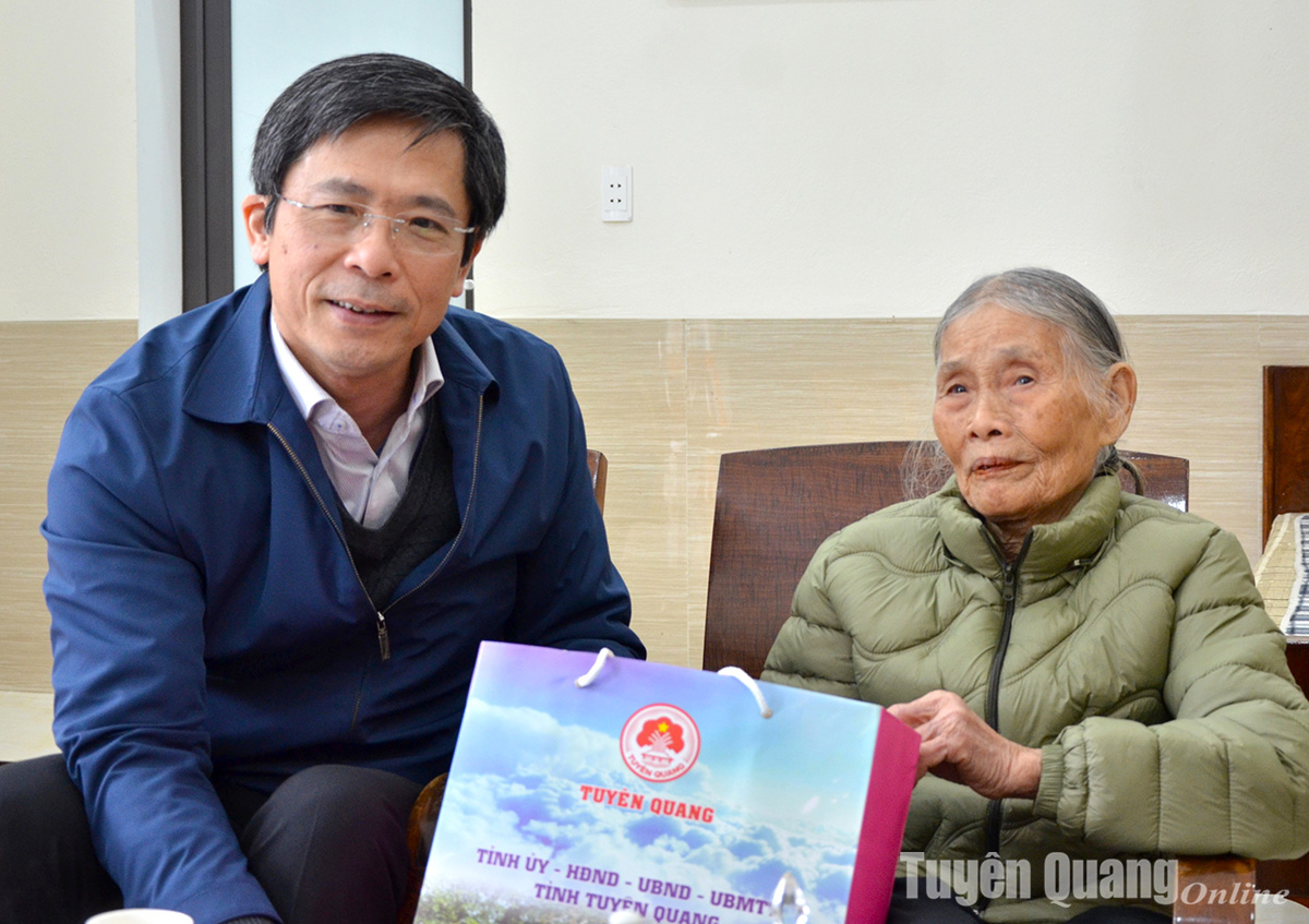 Đồng chí đã tới thăm, chúc Tết, trao Thiếp mừng thọ và quà của Chủ tịch nước, quà của tỉnh, của thành phố cho ông Trần Văn Thành, 100 tuổi ở tổ 6, phường Ỷ La; trao quà của tỉnh và thành phố cho bà Nguyễn Thị Yến, mẹ liệt sỹ Trương Văn Trung ở thôn An Lộc B, xã An Khang (TP Tuyên Quang). ​