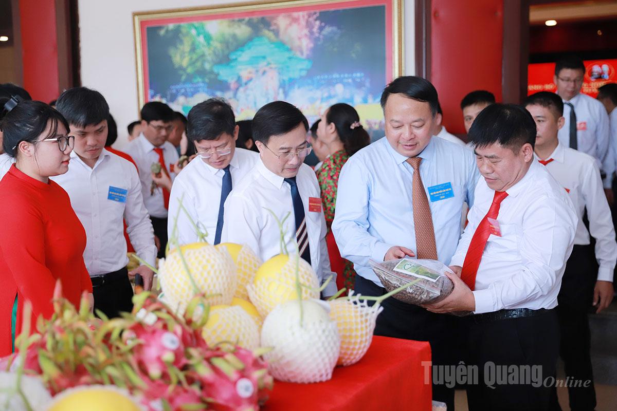 Chủ tịch UBND tỉnh Phan Huy Ngọc cùng các đại biểu tham quan các sản phẩm tiêu biểu ngành Nông nghiệp trưng bày tại Đại hội.