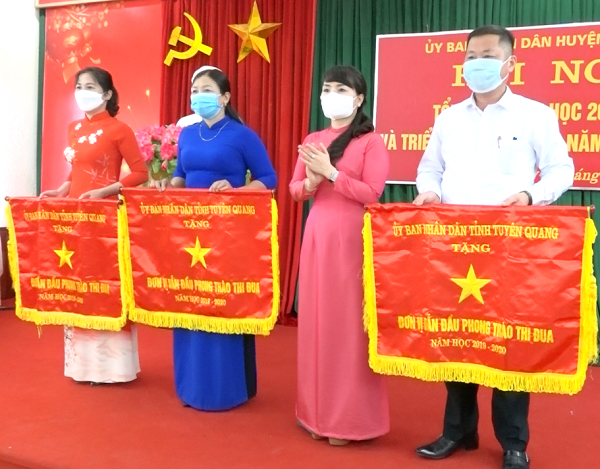 Nhân dịp này, UBND tỉnh đã tặng Cờ thi đua cho 3 tập thể; tặng danh hiệu "Tập thể lao động xuất sắc" cho 9 tập thể; tặng Bằng khen cho 1 tập thể và 6 cá nhân đã có thành tích xuất sắc trong phong trào thi đua yêu nước năm học 2019-2020.
