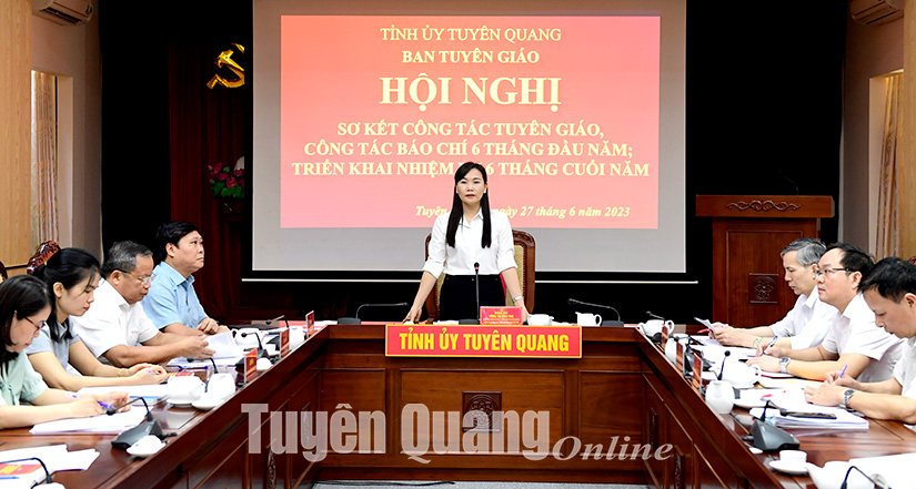 Kết luận hội nghị, đồng chí Trưởng Ban Tuyên giáo Tỉnh ủy Nông Thị Bích Huệ ghi nhận, đánh giá cao những thành tích trong 6 tháng đầu năm vừa qua mà toàn ngành Tuyên giáo, công tác báo chí, xuất bản tỉnh đạt được. Đồng chí nhấn mạnh nhiệm vụ trọng tâm 6 tháng cuối năm 2023 còn nhiều, đề nghị các cơ quan, đơn vị bám sát nhiệm vụ chính trị của địa phương, đơn vị, tiếp tục thực hiện tốt công tác tham mưu cho cấp ủy lãnh đạo đổi mới, nâng cao chất lượng việc nghiên cứu, học tập, quán triệt, tuyên truyền các nghị quyết, chỉ thị, kết luận, quyết định, quy định trong nhiệm kỳ Đại hội XIII của Đảng, Đại hội Đảng bộ tỉnh lần thứ XVII và nghị quyết đại hội đảng bộ các cấp nhiệm kỳ 2020-2025.