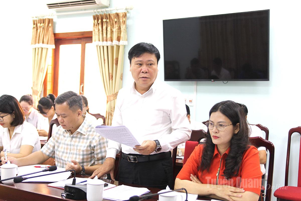 Đồng chí Tổng Biên tập Báo và phát thanh, truyền hình Tuyên Quang phát biểu tại cuộc họp.
