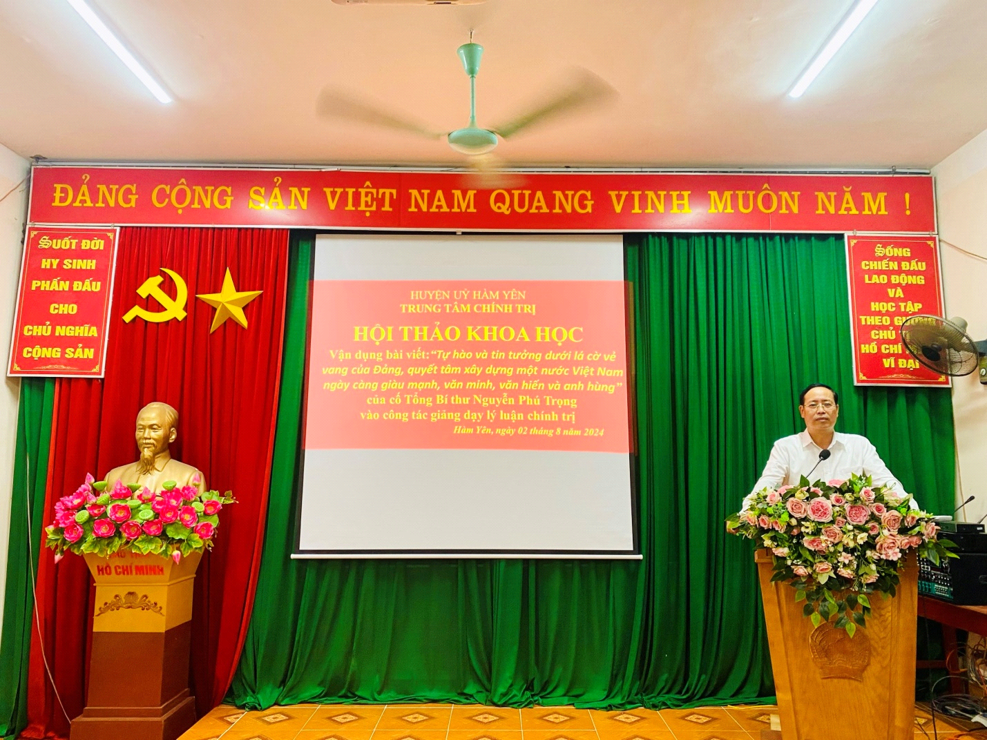 Tác phẩm của cố Tổng Bí thư như một lời căn dặn các thế hệ đảng viên luôn “Tự hào và tin tưởng dưới lá cờ vẻ vang của Đảng, quyết tâm xây dựng một nước Việt Nam ngày càng giàu mạnh, văn minh, văn hiến và anh hùng". Để tưởng nhớ cố Giáo sư, Tiến sĩ, Tổng Bí thư Nguyễn Phú Trọng, vừa qua, Trung tâm Chính trị huyện Hàm Yên đã tổ chức Hội thảo khoa học nhằm vận dụng bài viết của Cố Tổng Bí thư vào giảng dạy các chuyên đề trong chương trình đào tạo, bồi dưỡng tại Trung tâm chính trị.