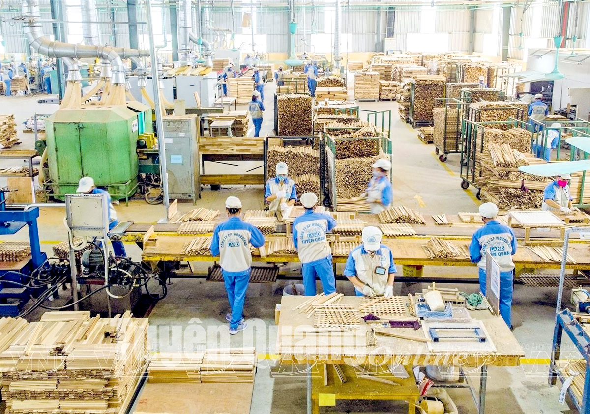 Công nhân Công ty cổ phần Woodsland Tuyên Quang gia công sản phẩm xuất khẩu.