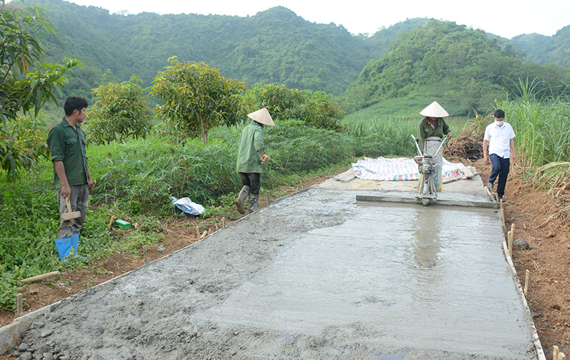 Người dân thôn An Ninh, xã Vinh Quang (Chiêm Hóa) làm đường bê tông nội đồng. Ảnh: Cao Huy