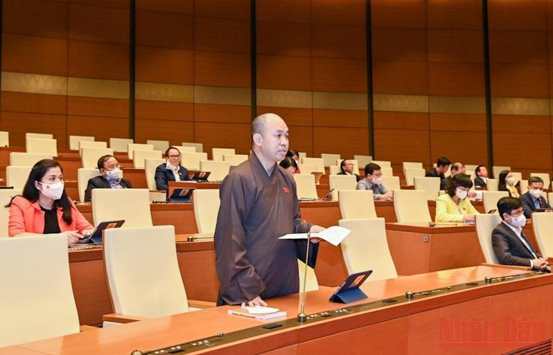 Đại biểu Thượng tọa Thích Đức Thiện (Điện Biên) phát biểu tại phiên thảo luận.