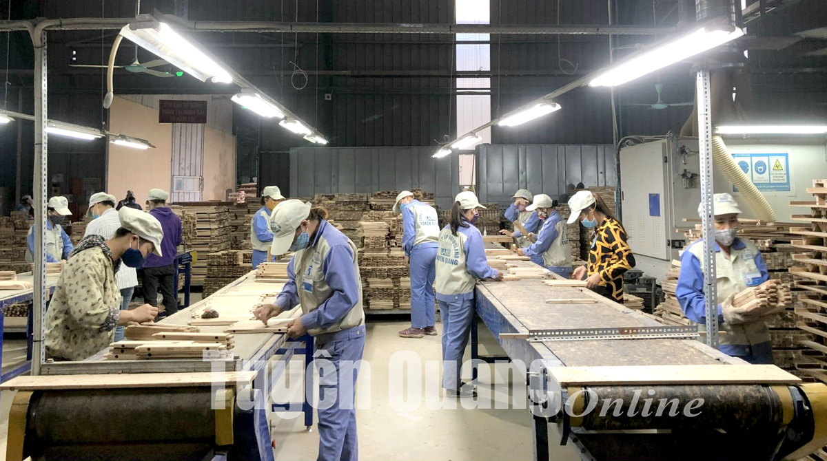 Gia công các sản phẩm gỗ xuất khẩu tại nhà máy sản xuất, Công ty cổ phần Woodsland Tuyên Quang.
