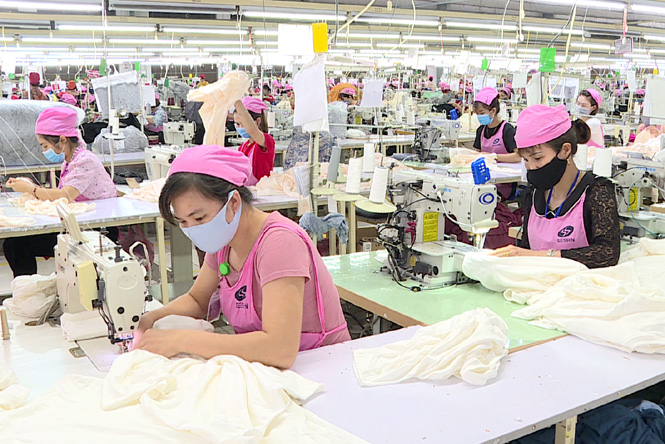 Dây chuyền sản xuất hàng xuất khẩu của Nhà máy May Seshin VN2. Ảnh: Thu Hương