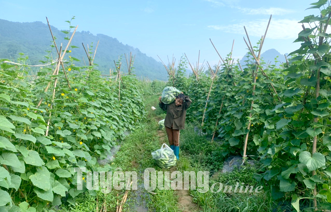 Chưa vụ đông nào, gia đình bà Nguyễn Thị Vui, thôn Ao Búc, xã Trung Yên (Sơn Dương) nhàn hạ và thắng lớn như vụ đông năm nay. Bà Vui cho biết, 6 sào dưa chuột của gia đình bà đến thời điểm này thu gần 10 tấn quả, giá tính bình quân 7.000 đồng/kg, bà đã thu về gần 70 triệu đồng, trừ chi phí phân bón, giống, điện bơm nước lãi trên 35 triệu đồng, điều bà Vui không ngờ đến, bởi trong thời điểm dịch bệnh Covid đang diễn biến phức tạp. Thu hái dưa xong, Hợp tác xã (HTX) Dịch vụ nông nghiệp kinh doanh hàng nông sản An Hòa (Vĩnh Phúc) cân, bốc ngay tại ruộng. Bà Vui tính, hết vụ dưa này bà tiếp tục xuống giống để kịp cung ứng cho HTX trong dịp Tết Nguyên đán sắp tới.