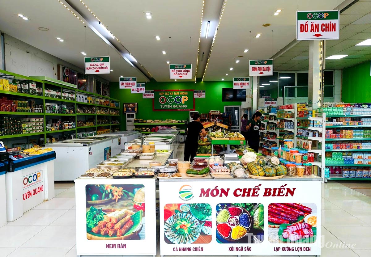 Dịp này, các mặt hàng thiết yếu, hàng Tết, quà tặng được HTX chú trọng; tập trung vào vào các sản phẩm đặc sản, sản phẩm OCOP của tỉnh Tuyên Quang và bổ sung thêm hàng hóa chất lượng trong nước đồng thời nhập khẩu các sản phẩm đạt chuẩn để đáp ứng nhu cầu mua sắm Tết của người dân. Ngoài việc làm sẵn giỏ quà, hộp quà để tiện cho khách mua, cửa hàng còn gói theo yêu cầu khách hàng. So với cách tiêu thụ truyền thống, việc cửa hàng đưa sản phẩm đặc sản, sản phẩm OCOP vào giỏ quà, hộp quà Tết sẽ giúp sản phẩm tăng tính cạnh tranh, lan tỏa ra thị trường, góp phần phát triển thương hiệu OCOP của tỉnh.
