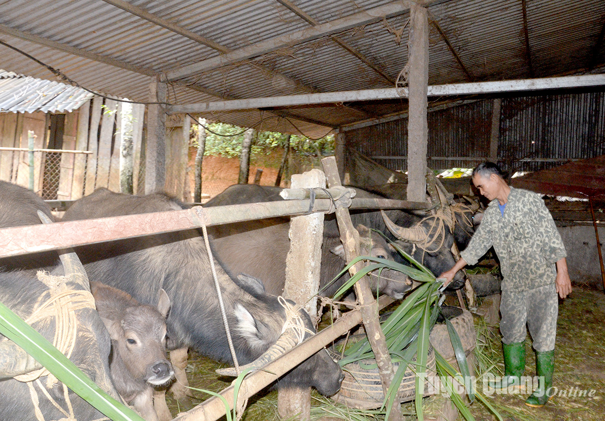 Hội viên Nguyễn Văn Hệ thôn Hòa Đa, xã Phúc Thịnh (Chiêm Hóa) phát triển mô hình nuôi trâu vỗ béo, trồng rừng.