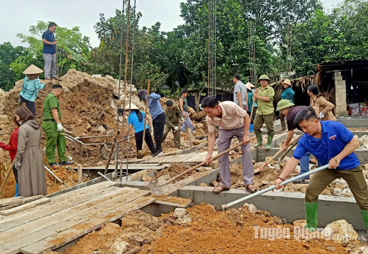 Cán bộ, công chức xã Trung Yên cùng Nhân dân tham gia hỗ trợ hộ nghèo xóa nhà tạm.
