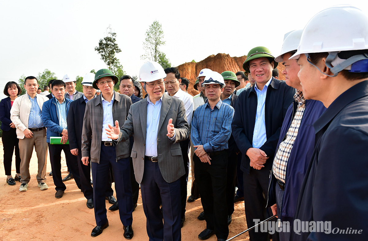 Chủ tịch UBND tỉnh Nguyễn Văn Sơn chỉ đạo công tác giải phóng mặt bằng, tiến độ thi công cao tốc Tuyên Quang - Hà Giang.