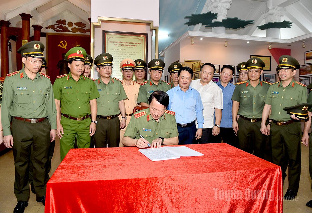 | Đại tướng, Bộ trưởng Bộ Công an Lương Tam Quang viết lưu bút tại Bảo tàng Công an nhân dân. |