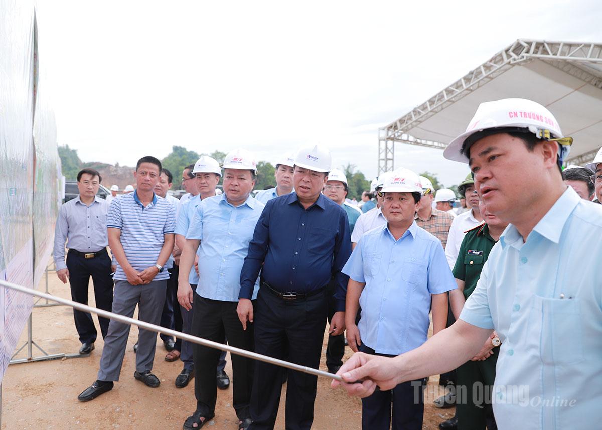 Qua kiểm tra, Bộ trưởng Trần Hồng Minh đề nghị tỉnh Tuyên Quang cần chỉ đạo nhà thầu và các đơn vị thi công tranh thủ thời tiết thuận lợi, thi công “3 ca, 4 kíp”, "làm ngày không đủ tranh thủ làm đêm" đẩy nhanh tiến độ, phấn đấu đến tháng 12-2025 có thể thông xe kỹ thuật quy mô 2 làn xe.