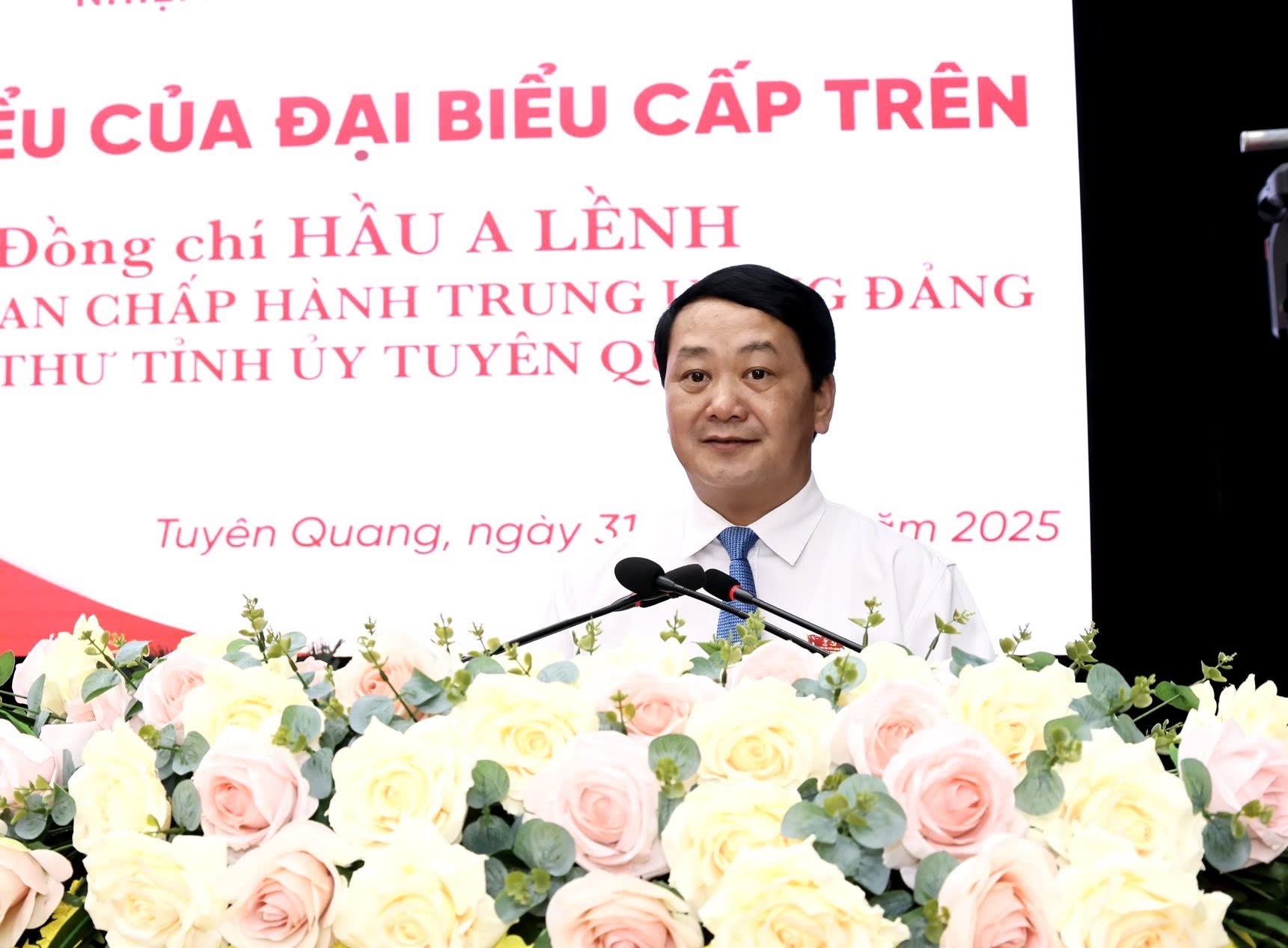 Sáng 31-7, Đảng bộ Công an tỉnh Tuyên Quang tổ chức Đại hội đại biểu lần thứ XIII, nhiệm kỳ 2025–2030. Dự và chỉ đạo Đại hội có các đồng chí: Hầu A Lềnh, Ủy viên Ban Chấp hành Trung ương Đảng, Bí thư Tỉnh ủy; Thượng tướng Lê Văn Tuyến, Ủy viên Ban Thường vụ Đảng ủy Công an Trung ương, Thứ trưởng Bộ Công an. Cùng dự còn có các đồng chí trong Ban Thường vụ Tỉnh ủy, đại diện các đơn vị nghiệp vụ Bộ Công an; lãnh đạo các sở, ban, ngành, đơn vị của tỉnh; các đồng chí nguyên lãnh đạo Công an tỉnh qua các thời kỳ, Công an tỉnh Hà Giang (cũ) và 217 đại biểu chính thức đại diện cho hơn 2.300 đảng viên trong toàn Đảng bộ.