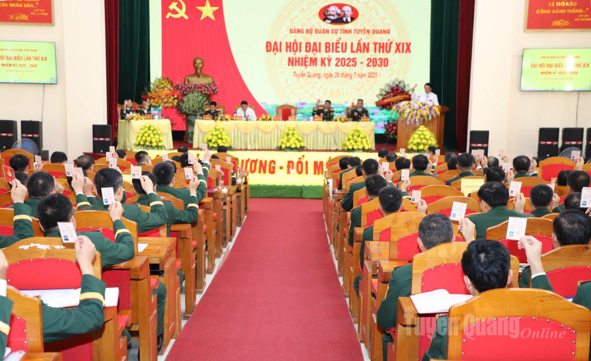 Chiều 29-7, Đảng bộ Quân sự tỉnh long trọng tổ chức Đại hội đại biểu lần thứ XIX, nhiệm kỳ 2025-2030. Dự Đại hội có các đồng chí: Hầu A Lềnh, Ủy viên BCH Trung ương Đảng, Bí thư Tỉnh ủy, Bí thư Đảng ủy Quân sự tỉnh Tuyên Quang; Thiếu tướng Nguyễn Hồng Thái, Ủy viên Ban Thường vụ Đảng ủy, Phó Chính ủy Quân khu 2; Phan Huy Ngọc, Phó Bí thư Tỉnh ủy, Chủ tịch UBND tỉnh; các đồng chí trong Ban Thường vụ Tỉnh ủy; lãnh đạo Bộ Chỉ huy Quân sự tỉnh, các cơ quan Quân khu, các sở, ban, ngành, đoàn thể của tỉnh.