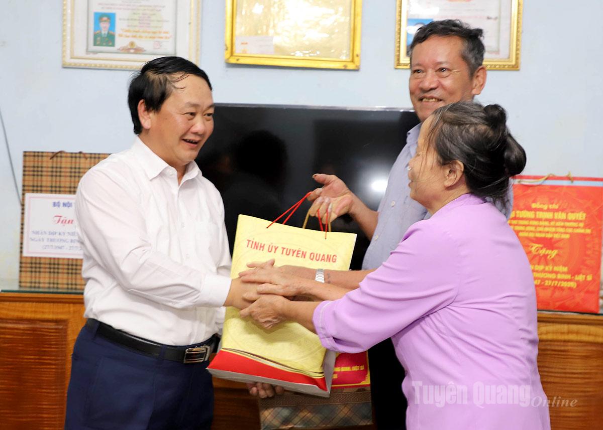 | Bí thư Tỉnh ủy Hầu A Lềnh tặng quà gia đình thương binh Nguyễn Trọng Đải. |