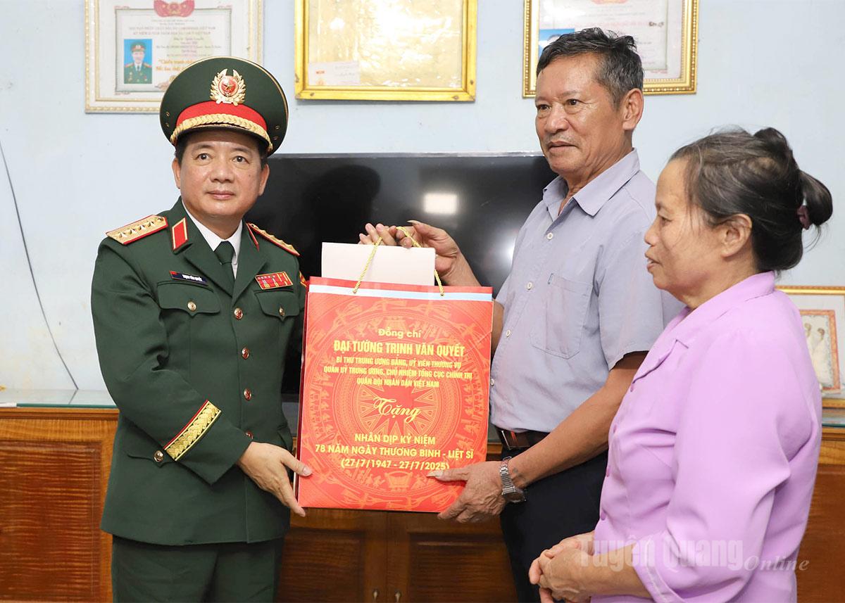 Nhân kỷ niệm 78 năm Ngày Thương binh – Liệt sĩ, Đại tướng Trịnh Văn Quyết; Bí thư Tỉnh ủy Hầu A Lềnh; lãnh đạo Tổng cục Chính trị, Quân khu II, Bộ Nội vụ đã đến thăm, tặng quà gia đình thương binh Nguyễn Trọng Đải, xã Vị Xuyên, nhiễm chất độc da cam 76% có con gái và cháu nội chịu ảnh hưởng của chất độc da cam.