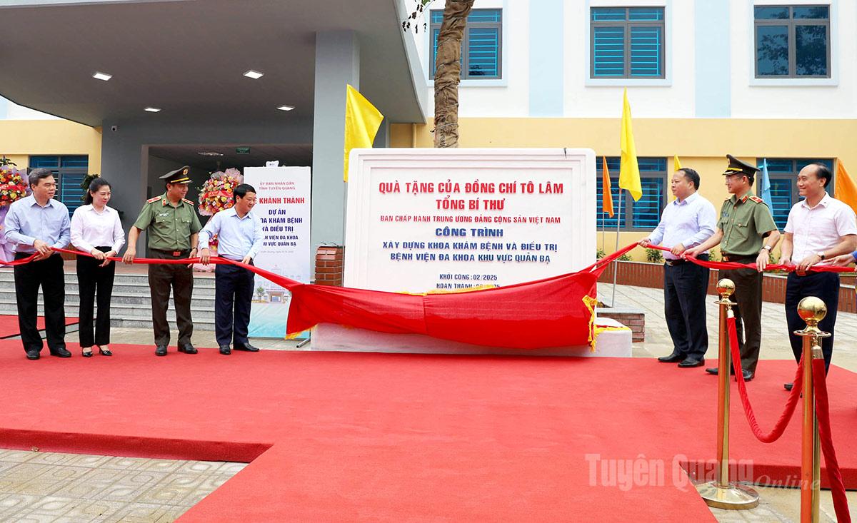 Sáng 10-8, UBND tỉnh Tuyên Quang tổ chức Lễ khánh thành công trình Khoa khám bệnh và điều trị, Bệnh viện Đa khoa khu vực Quản Bạ - Đây là món quà có ý nghĩa nhân văn sâu sắc của đồng chí Tô Lâm, Tổng Bí thư BCH Trung ương Đảng Cộng sản Việt Nam dành cho Đảng bộ, chính quyền và Nhân dân các dân tộc khu vực Quản Bạ.