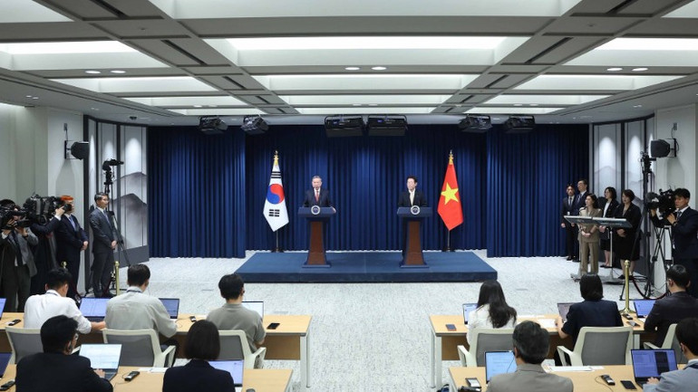 Trong khuôn khổ chuyến thăm cấp Nhà nước tới Hàn Quốc, sáng 11/8, sau cuộc Hội đàm tại Phủ Tổng thống Yongsan (Thủ đô Seoul), Tổng Bí thư Tô Lâm và Tổng thống Hàn Quốc Lee Jae Myung đã gặp gỡ phóng viên các cơ quan thông tấn, báo chí, thông báo kết quả hội đàm.