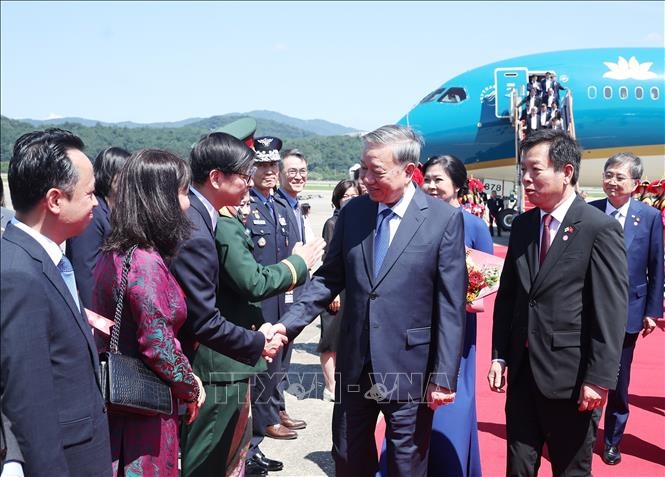 Tổng Bí thư Tô Lâm và Phu nhân đến thủ đô Seoul, bắt đầu chuyến thăm cấp Nhà nước tới Hàn Quốc. Ảnh: TTXVN