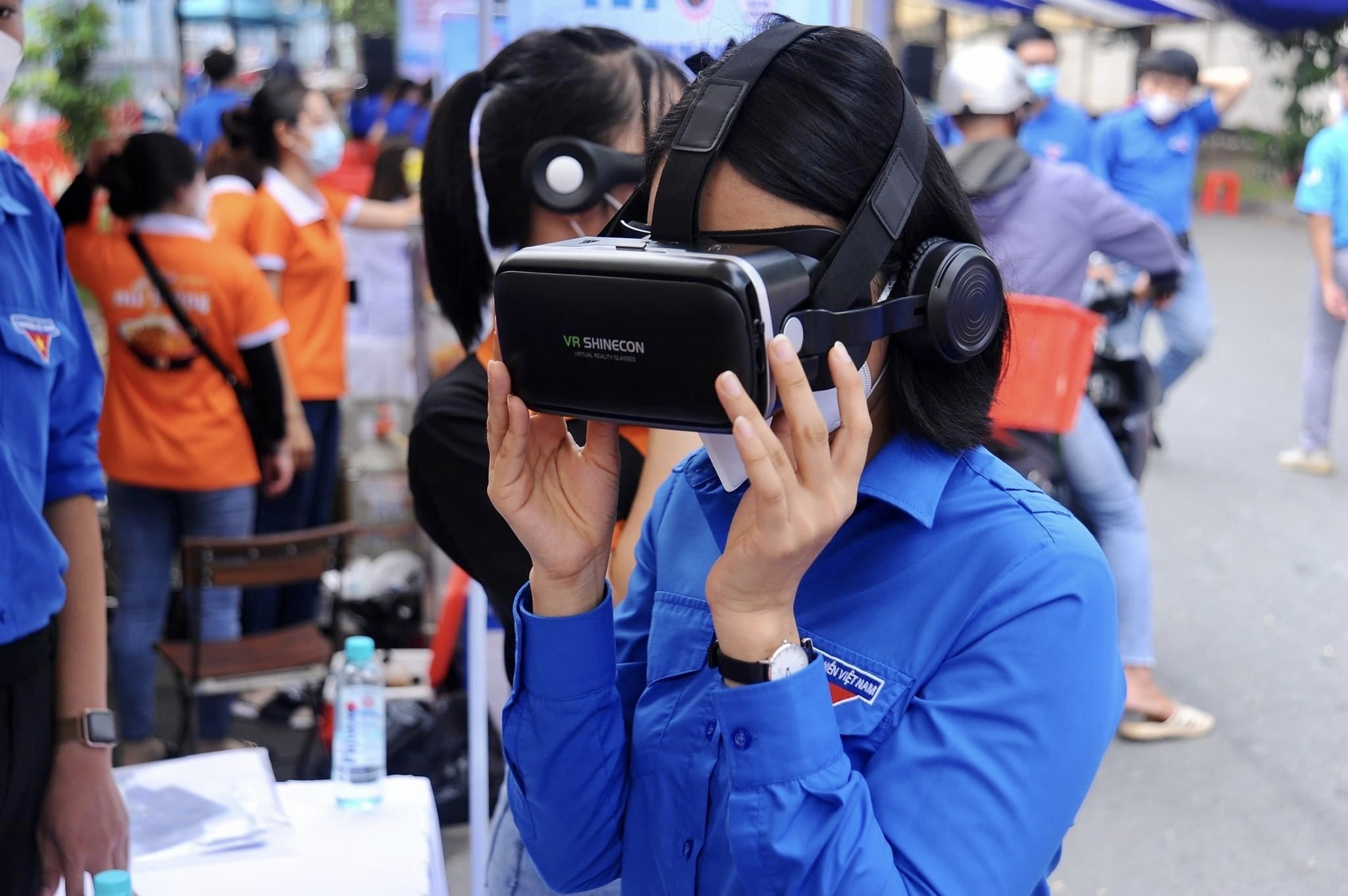 Đổi mới sáng tạo cùng với khoa học - công nghệ  là nền tảng để thực hiện chuyển đổi số quốc gia, góp phần quan trọng nâng cao đời sống của nhân dân (Trong ảnh: Đoàn viên, thanh niên trải nghiệm công nghệ thực tế ảo)_Ảnh: TTXVN.