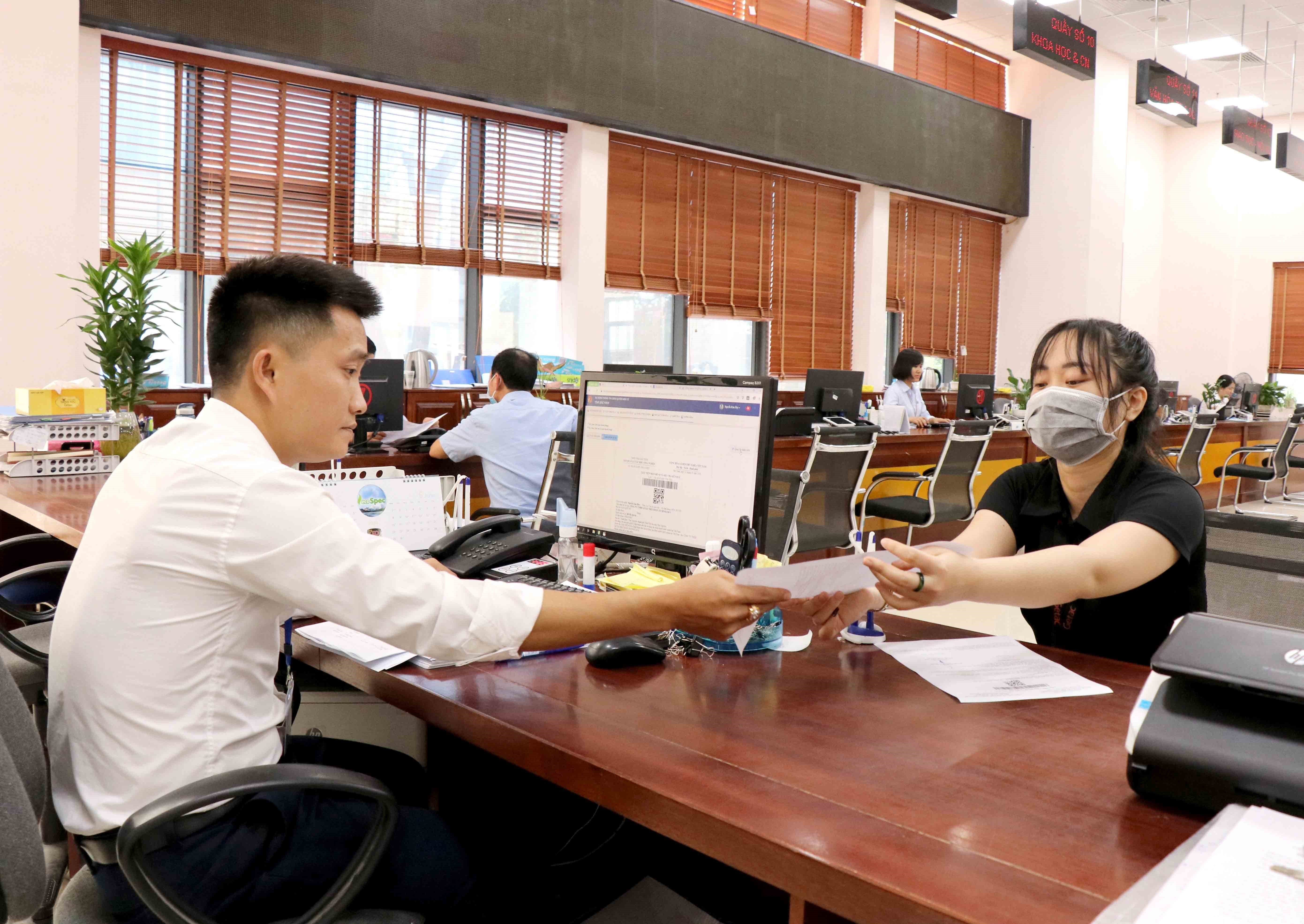 Cán bộ Trung tâm Hành chính công tỉnh Bắc Ninh hướng dẫn người dân, doanh nghiệp giải quyết các thủ tục hành chính