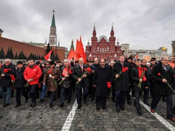 Các thành viên Đảng Cộng sản Nga tại lễ kỷ niệm 100 năm Cách mạng Tháng 10 Nga ở thủ đô Moskva. Ảnh: TTXVN