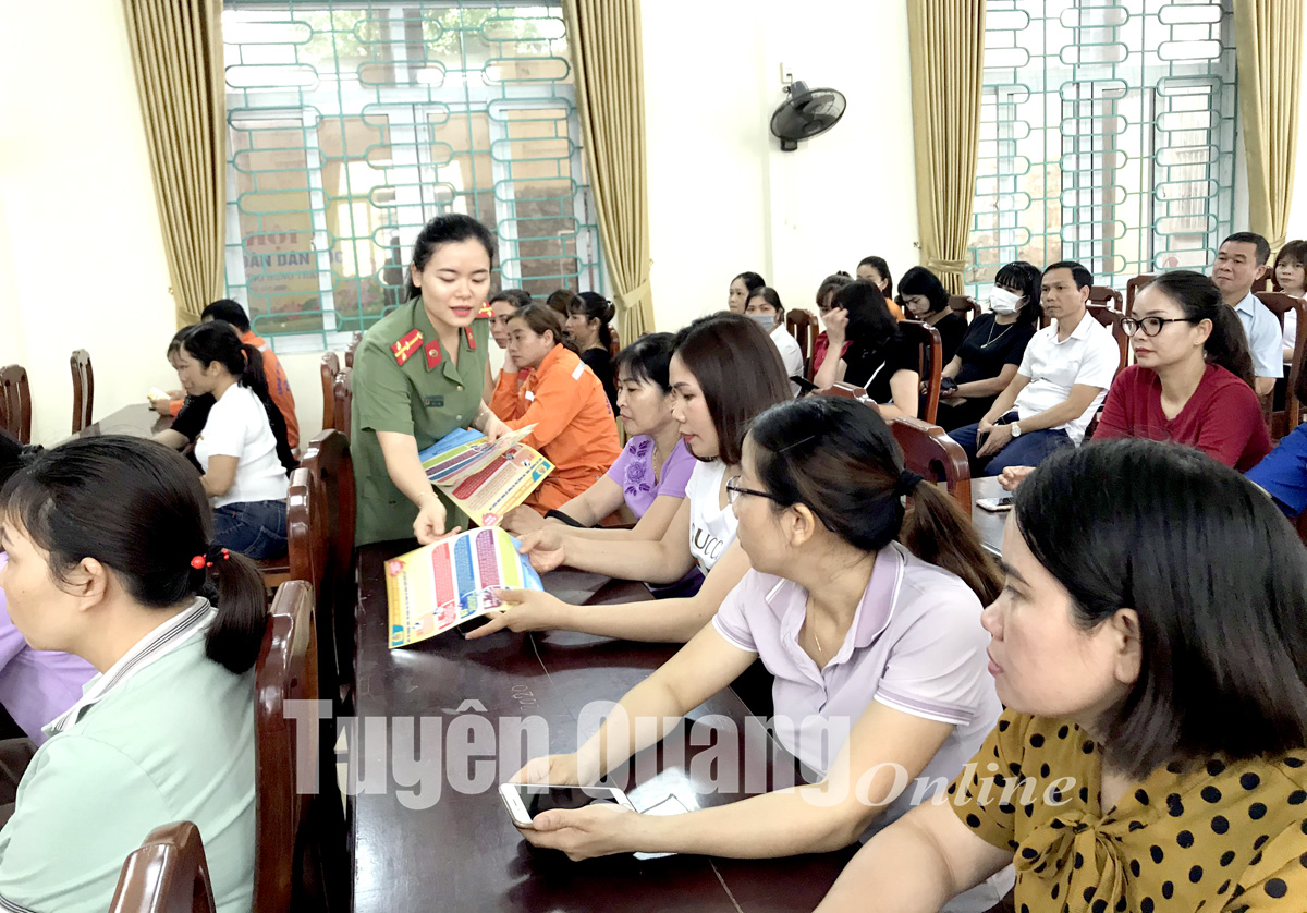 Liên đoàn Lao động tỉnh phối hợp với Phòng An ninh mạng và phòng, chống tội phạm sử dụng công nghệ cao Công an tỉnh phát tờ rơi cho công nhân, lao động thành phố Tuyên Quang