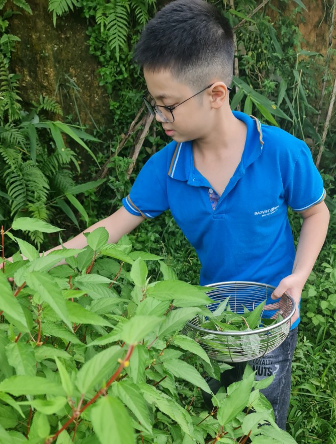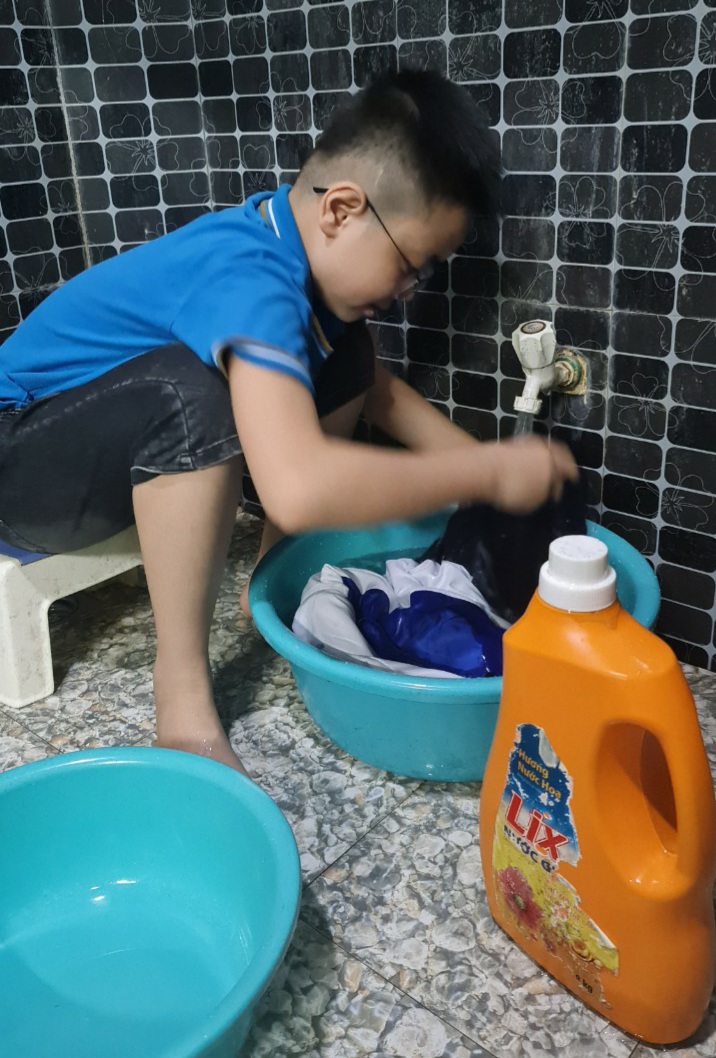 Vũ Anh Khôi phụ giúp bố mẹ làm việc nhà