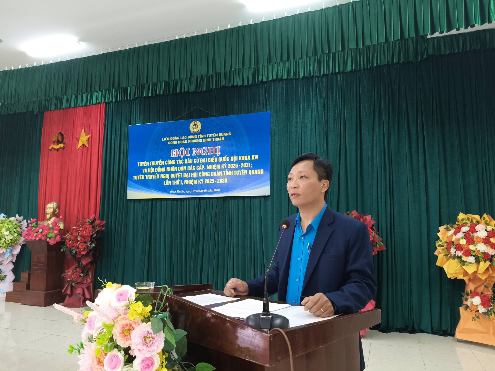 Liên đoàn Lao động tỉnh tổ chức Hội nghị tuyên truyền công tác bầu cử và Nghị quyết Đại hội Công đoàn tỉnh Tuyên Quang tại phường Hà Giang 2