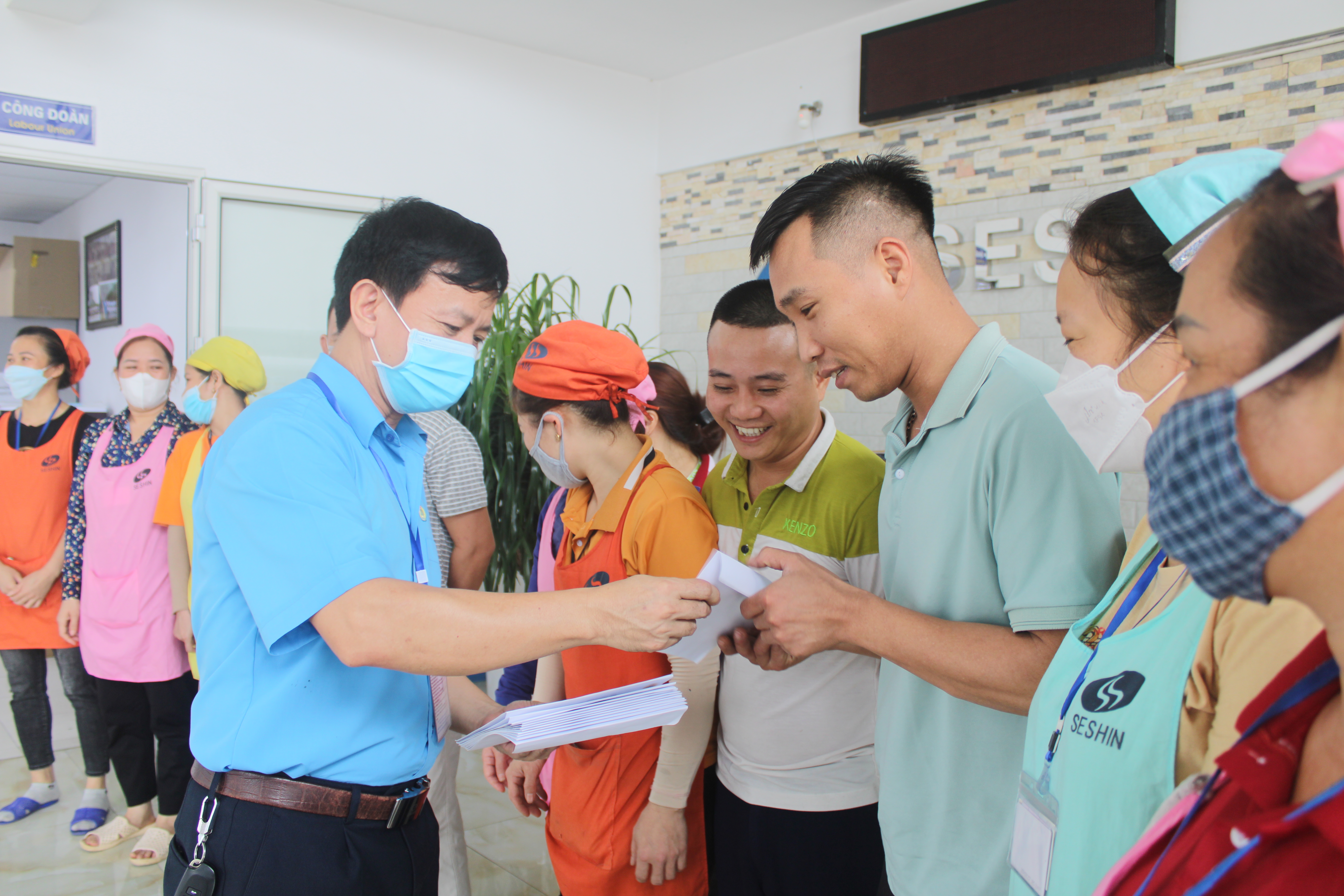 Ngày 27/4/2023, đồng chí Nguyễn Văn Quang, Ủy viên Ban Thường vụ LĐLĐ tỉnh, Chủ tịch Công đoàn các Khu Công nghiệp tỉnh đã thăm hỏi và trao tiền hỗ trợ cho các đoàn viên, người lao động thuộc Công ty TNHH MTV Seshin VN2 và Công ty TNHH Tam Cửu bị tạm hoãn thực hiện hợp đồng lao động, nghỉ việc không hưởng lương, chấm dứt hợp đồng lao động từ tháng 10/2022 đến tháng 02/2023 (Công đoàn các Khu Công nghiệp tỉnh được LĐLĐ tỉnh xét duyệt hỗ trợ 75 đoàn viên công đoàn, người lao động với tổng số tiền hỗ trợ 172 triệu đồng).