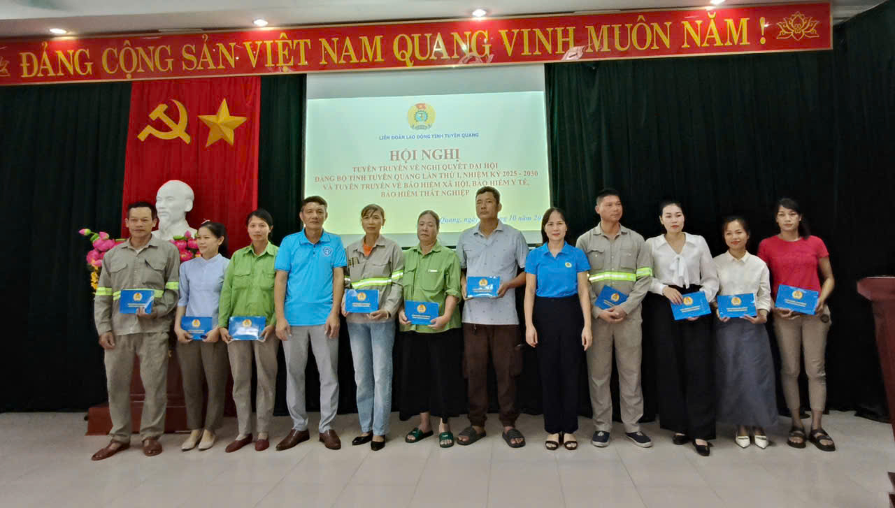 Sáng 15/10/2025 , Liên đoàn Lao động tỉnh Tuyên Quang tổ chức Hội nghị tuyên truyền Kết quả Đại hội Đảng bộ tỉnh Tuyên Quang lần thứ I, nhiệm kỳ 2025 - 2030 và tuyên truyền, đối thoại chính sách BHXH, BHYT, BHTN cho 150 đoàn viên, người lao động của Công ty Cổ phần Dịch vụ môi trường và Quản lý đô thị tỉnh Tuyên Quang.
