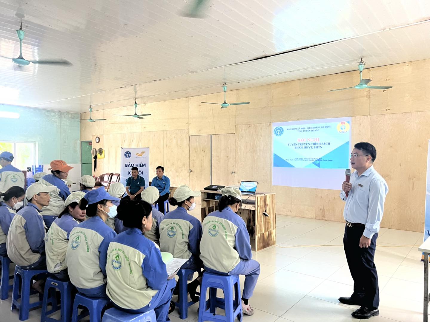 Chiều ngày 23/10/2025, Liên đoàn Lao động tỉnh tổ chức hội nghị tuyên truyền kết quả Đại hội đại biểu Đảng bộ tỉnh Tuyên Quang lần thứ I, nhiệm kỳ 2025 - 2030 và truyền thông chính sách, pháp luật về BHXH, BHYT, BHTN cho hơn 100 đoàn viên, công nhân lao động tại Công ty CP Công nghiệp và XNK Lâm nghiệp.