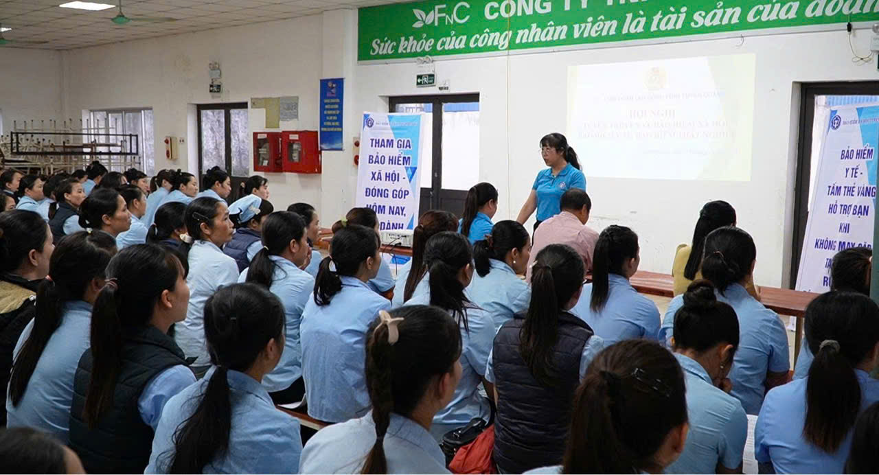 Ngày 25/10/2025, tại Công ty TNHH MSA YB, Liên đoàn Lao động tỉnh tổ chức Hội nghị tuyên truyền về chính sách BHXH, BHYT, BHTN cho công nhân lao động. Dự Hội nghị có các đồng chí lãnh đạo Ban Công tác Công đoàn tỉnh, Phòng Tuyên truyền và hỗ trợ người tham gia Bảo hiểm xã hội tỉnh, Công đoàn phường Bình Thuận và 200 công nhân lao động Công ty.