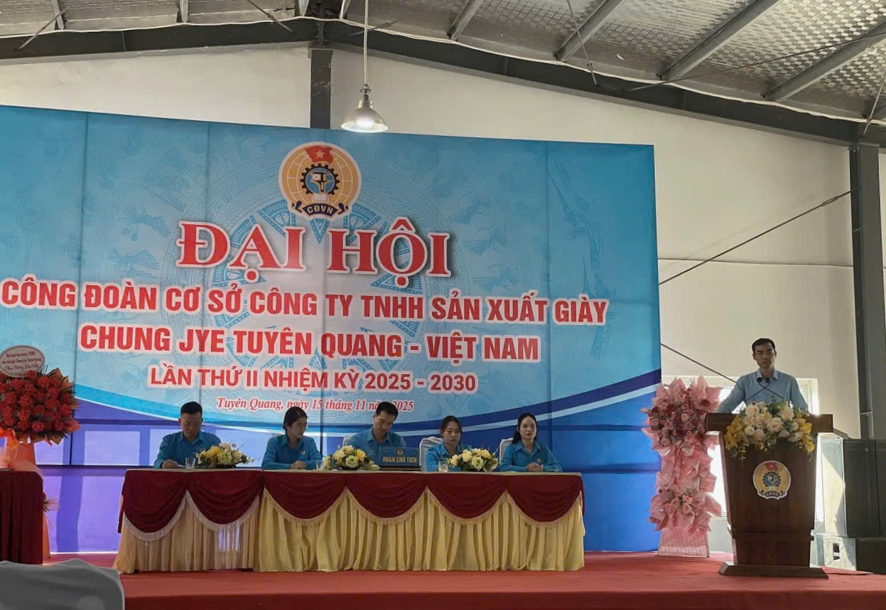 Ngày 15/11/2025, Công đoàn cơ sở Công ty TNHH Sản xuất Giày ChungJye Tuyên Quang - Việt Nam tổ chức Đại hội lần thứ II, nhiệm kỳ 2025-2030.