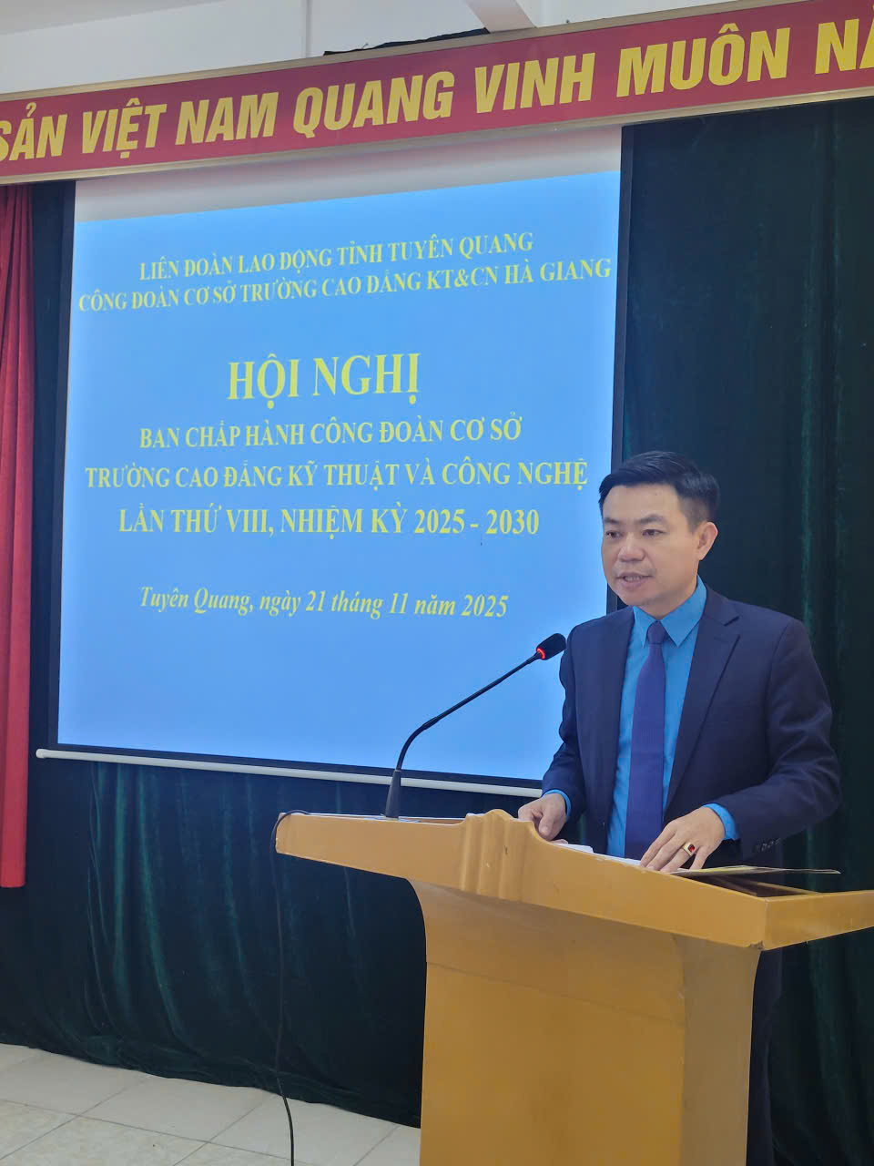 Chiều ngày 21/11/2025, Công đoàn cơ sở Trường Cao đẳng Kỹ thuật và Công nghệ Hà Giang đã tổ chức Hội nghị Ban Chấp hành lần thứ VIII (nhiệm kỳ 2025-2030).