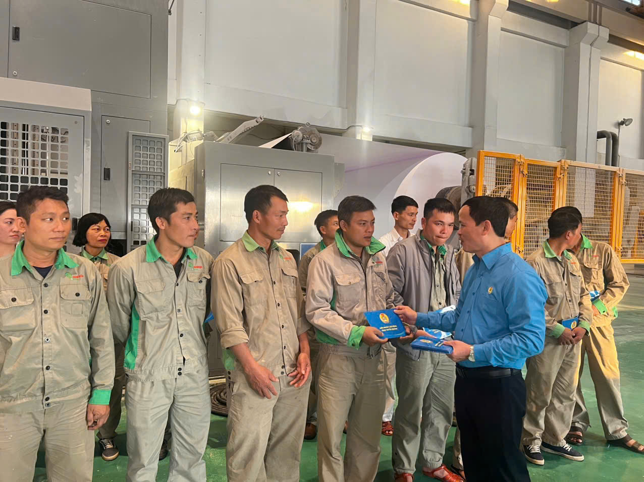 Tại buổi làm việc, đồng chí Chủ tịch Liên đoàn Lao động tỉnh Triệu Tài Phong đã thăm hỏi, tặng quà cho 20 đoàn viên, người lao động trong Công ty bị tai nạn lao động nặng, bị bệnh hiểm nghèo và các gia đình có hoàn cảnh khó khăn. Đồng chí biểu dương thành tích mà Công đoàn cơ sở đã đạt được trong nhiều năm qua, đồng thời đề nghị Công đoàn cơ sở tiếp tục đổi mới nội dung, phương thức hoạt động; chăm lo bồi dưỡng nâng cao hiệu quả hoạt động của đội ngũ cán bộ công đoàn, phát huy quy chế dân chủ, chăm lo bảo vệ quyền và các lợi ích hợp pháp, chính đáng của người lao động trong Công ty, đảm bảo đời sống, việc làm, đồng hành cùng doanh nghiệp, góp phần đưa Công ty cổ phần Giấy An Hòa ngày càng phát triển toàn diện và bền vững.