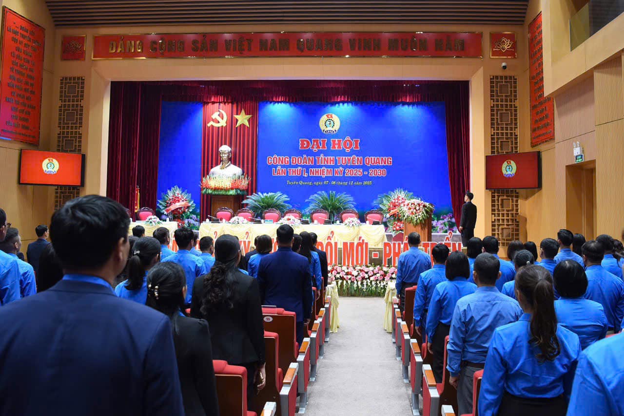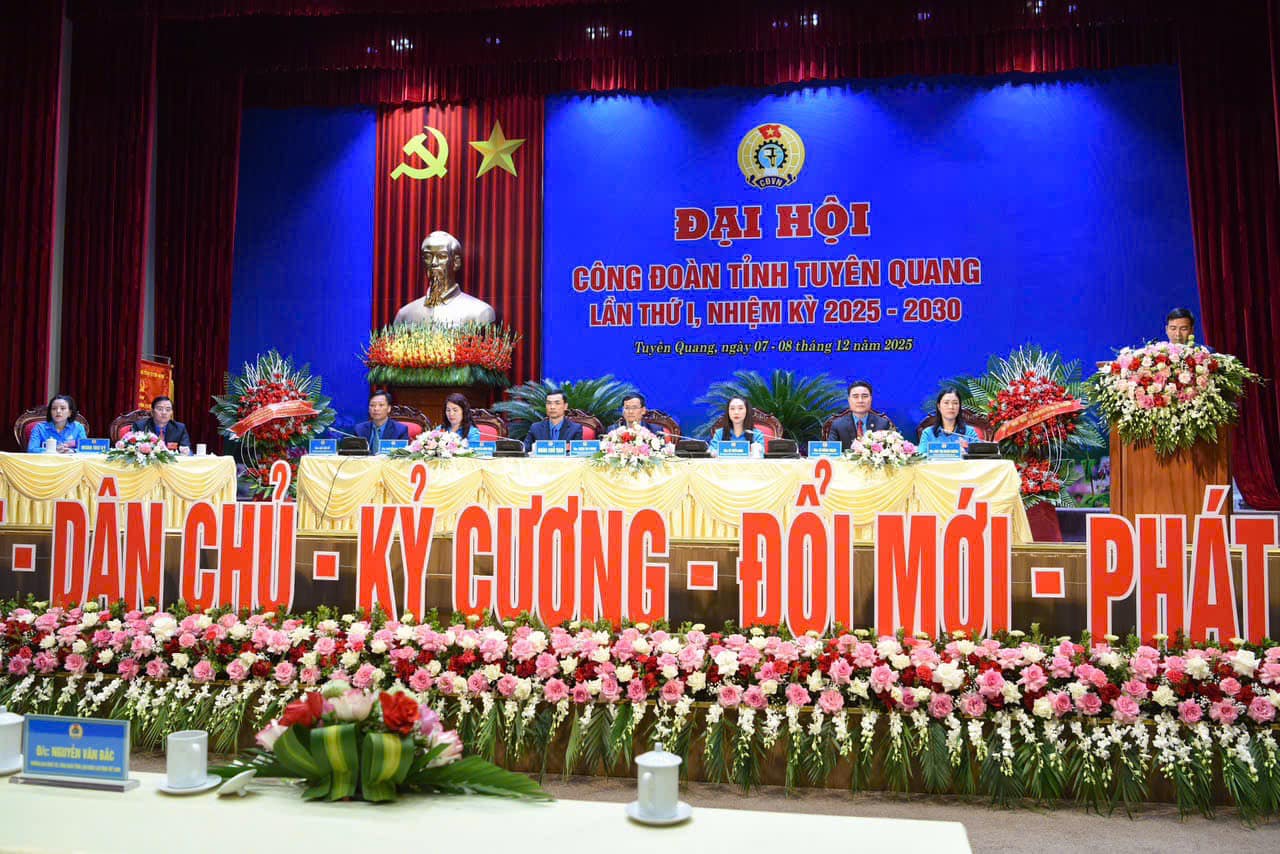Với phương châm "Đoàn kết - Dân chủ - Kỷ cương - Đổi mới - Phát triển", phiên thứ nhất Đại hội Công đoàn tỉnh Tuyên Quang lần thứ I, nhiệm kỳ 2025 đã hoàn thành các nội dung. Theo chương trình, phiên toàn thể Đại hội Công đoàn tỉnh Tuyên Quang lần thứ I, nhiệm kỳ 2025 khai mạc vào lúc 7h30p ngày 08/12, tại Hội trường lớn, Tỉnh uỷ Tuyên Quang, phường Hà Giang 1.