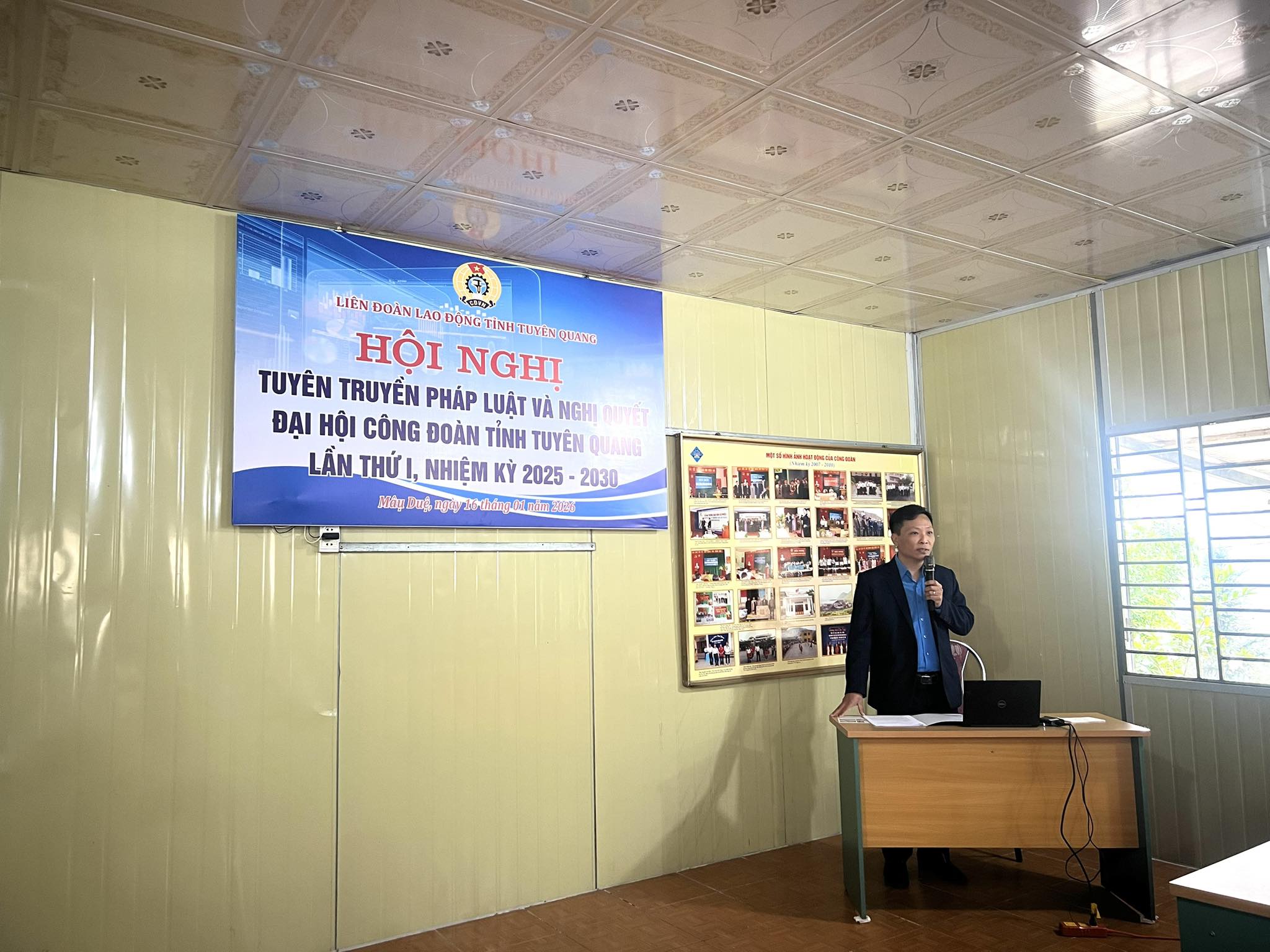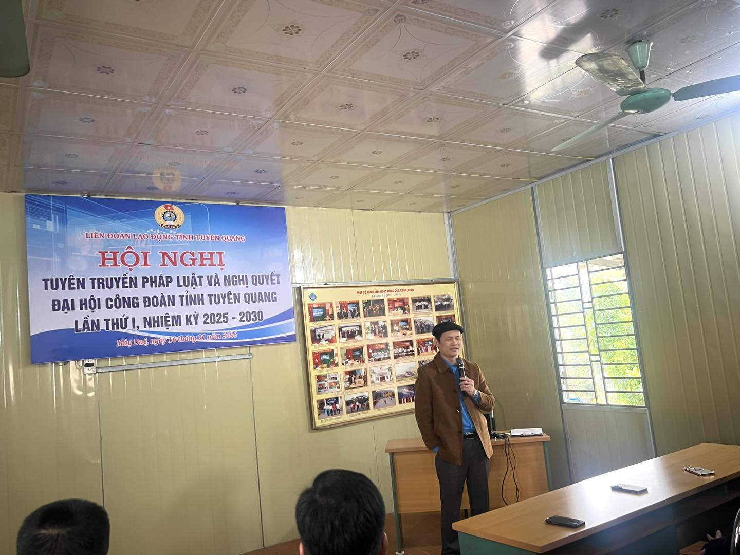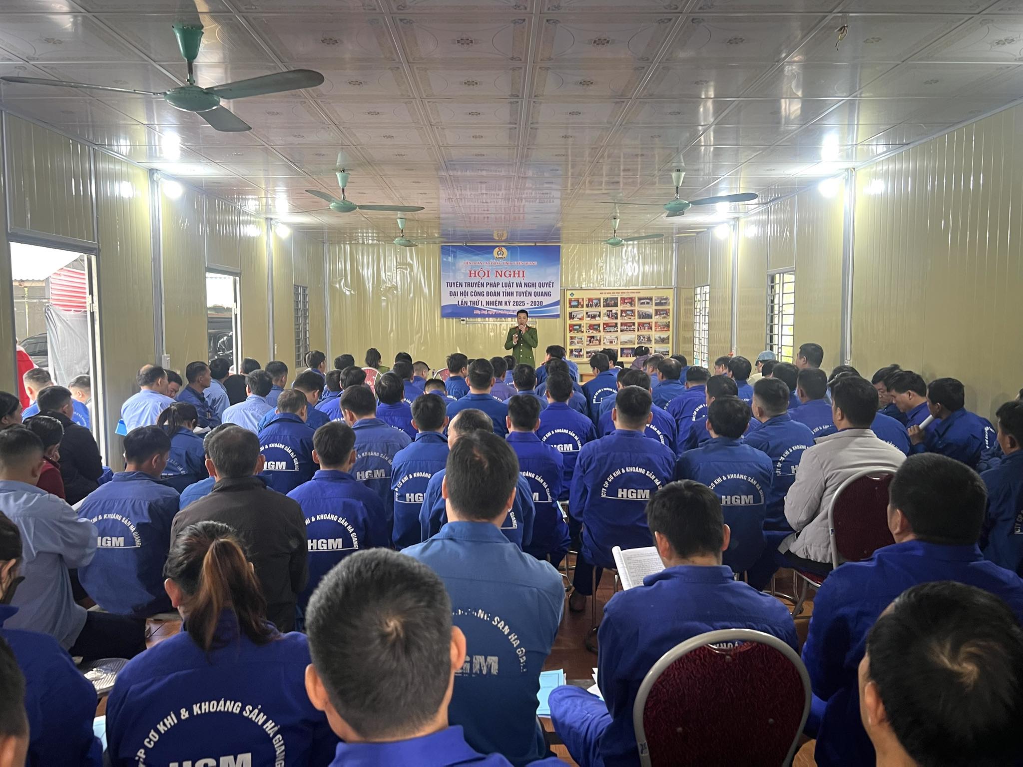 Ngày 16/01/2026, Liên đoàn Lao động tỉnh tổ chức Hội nghị tuyên truyền pháp luật và Nghị quyết Công đoàn nhiệm kỳ lần thứ I, nhiệm kỳ 2025 - 2030 cho hơn 150 đoàn viên, CNLĐ Công ty CP Cơ khí và Khoáng sản Hà Giang